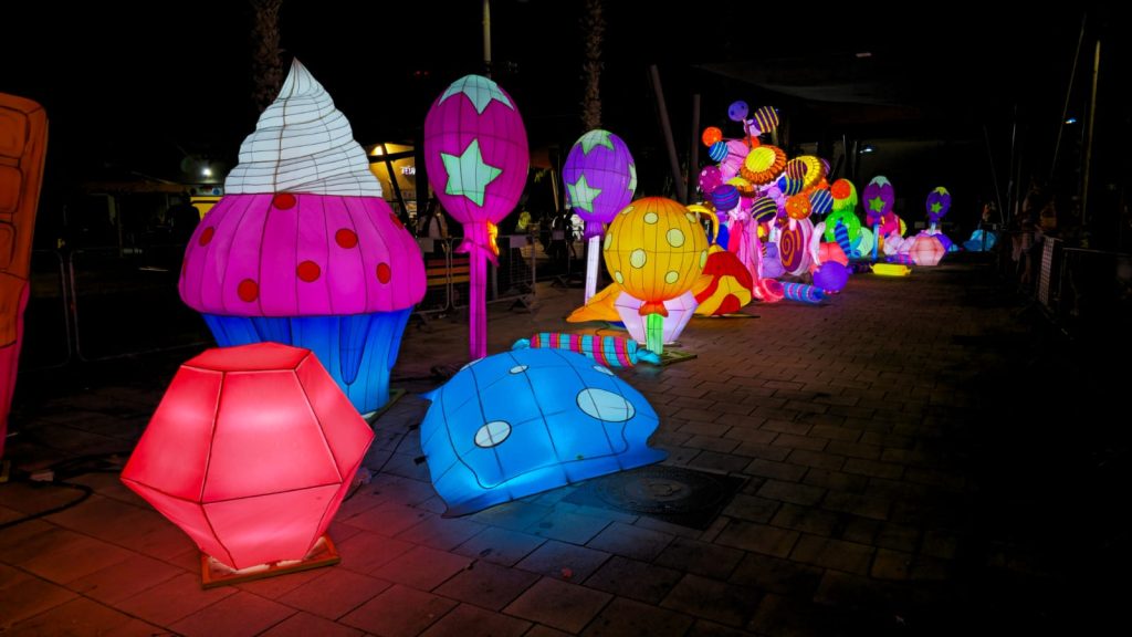 Есть и сладкое чудо — аллея сладостей с огромными капкейками, леденцами и карамельными грибами, где чувствуешь себя героем детской сказки.